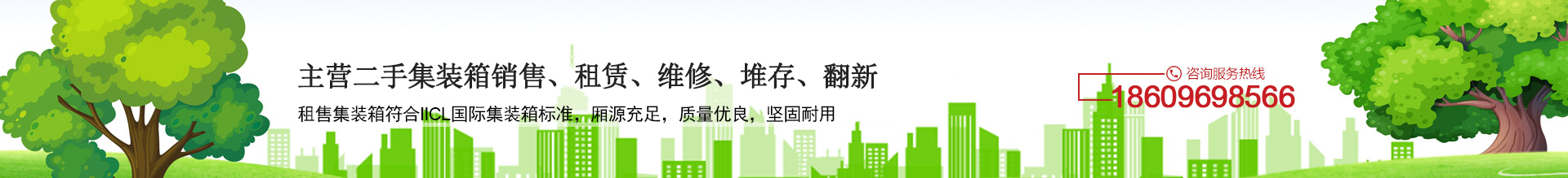 主營二手集裝箱銷售、租賃、維修、堆存、翻新。ISO罐箱,開頂箱,框架箱冷藏集裝箱加寬加高,集裝箱活動(dòng)房改裝,飛翼集裝箱改裝,特種集裝箱定制與改裝,以及運(yùn)輸?shù)葮I(yè)務(wù),所有租售集裝箱符合IICL國際集裝箱標(biāo)準(zhǔn),廂源充足,質(zhì)量優(yōu)良,堅(jiān)固耐用。20GP 40GP 40HQ 45HQ規(guī)格齊全。